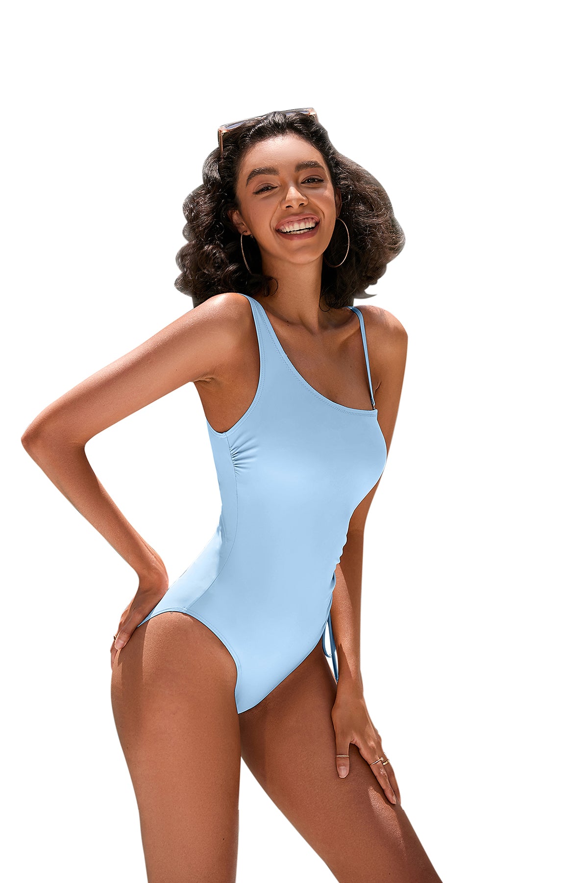Womens One Shoulder One Piece Swimsuits , Baby Blue